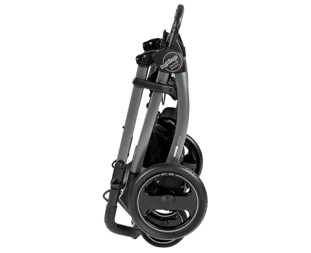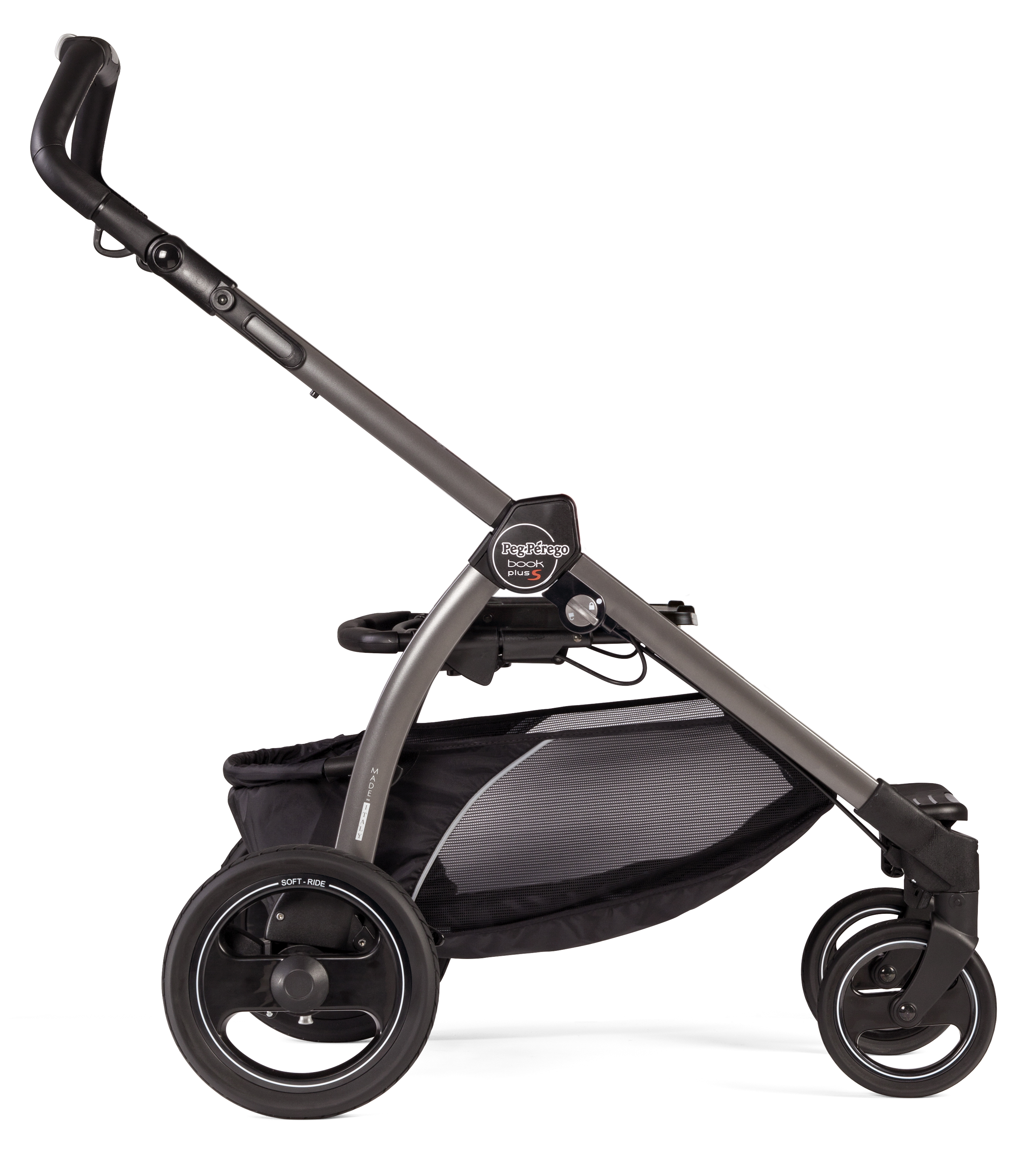 Шасси Peg Perego Book Plus S - усовершенствованная модель шасси Book Plus. Оно имеет мягкие передние полиуретановые колеса системы "мягкий ход", и задние колеса из вспененной резины с протекторами, для улучшенной проходимости. Кожаная ручка более долговечна для любителей носить кольца. Среди нововведений - совершенно новый фиксатор коляски в сложенном виде. Так же серьезному обновлению подверглась фиксация передних поворотных колес - заимствована у флагмана компании коляски Peg-Perego GT3. Теперь нет необходимости наклоняться и пачкать руки при смене режима управления коляской - фиксатор располагается на раме, задействует одновременно оба передних колеса и максимально удобен.