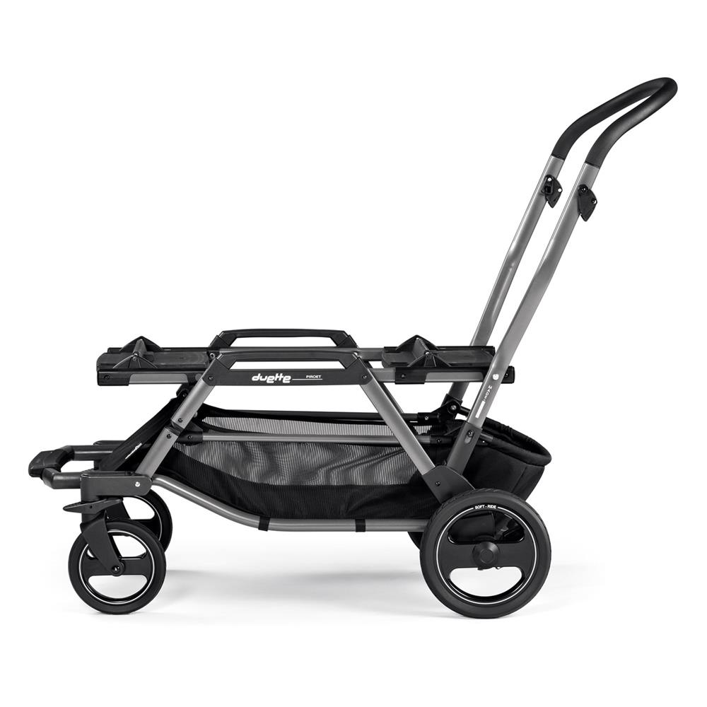 Шасси Peg-Perego Duette (Пег-Перего Дуэт) – это уникальная разработка специалистов компании Peg-Perego для семей у которых двойня. В зависимости от возраста детей, Вы можете крепить на шасси люльку для новорождённого Navetta или автокресло Primo Viaggio Tri-Fix, а Шасси Peg-Perego Duette (Пег-Перего Дуэт) – это уникальная разработка специалистов компании Peg-Perego для семей у которых двойня. В зависимости от возраста детей, Вы можете крепить на шасси люльку для новорождённого Navetta или автокресло Primo Viaggio Tri-Fix, а если малыши старше полугода – то это сиденье Peg-Perego Duette. Все сиденьяможно устанавливать в разных направлениях: лицом к маме, лицом от мамы, лицом друг к другу, лицом друг от друга. В любом случае, Вы получаете невероятно удобную и функциональную коляску! Управления коляской осуществляется при помощи рулевого управления, расположенного на ручке сиденья, а именно 2 клавиши для регулировки положения руля, что очень удобно для мамы, а также – рычаг управления передними колёсами – для фиксированного положения и режима езды с поворотом колёс. Шасси Duette оснащено 4-мя массивными колёсами на амортизаторах. Передние вращающиеся колёса можно зафиксировать с помощью рычага управления. На задних колёсах размещены надёжные тормоза. Шасси легко складывается по типу «книжка» с помощью рычага для складывания и является достаточно компактным в сложенном виде.