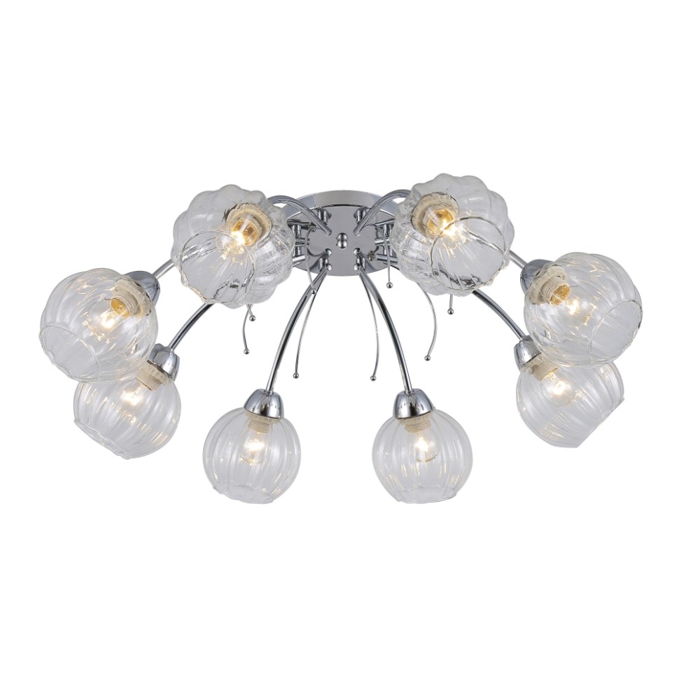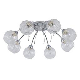 Rivoli Veronica - большие люстры в гостиную с 8 прозрачными плафонами в форме цветочных бутонов. Изготовлены из прочного металла со стойким гальваническим покрытием и качественного фигурного стекла. Такие люстры потолочные дают много света за счет большого количества ламп и прозрачности плафонов. Освещаемая площадь этой красивой люстры - 24 м sup2;. Размер - 720*720*230 мм. Стиль эффектной люстры на потолок Rivoli Veronica - модерн. Аккуратность оформления делает эти люстры универсальным решением как для традиционных, так и для современных интерьеров. Если вы сделали свежий ремонт, готовитесь к переезду или просто решили обновить обстановку, люстры Veronica - доступный и эффективный вариант. Они созданы итальянскими дизайнерами бренда Rivoli в рамках серии специальной Лайт - по невысокой цене спешите купить дизайнерские люстры оптимального качества! Коллекцию Veronica дополняют люстры с 5 и 3 плафонами.