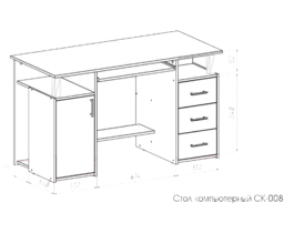 - Комплектация выдвижные ящики, полка (-и), полка для клавиатуры, ниша в столешнице