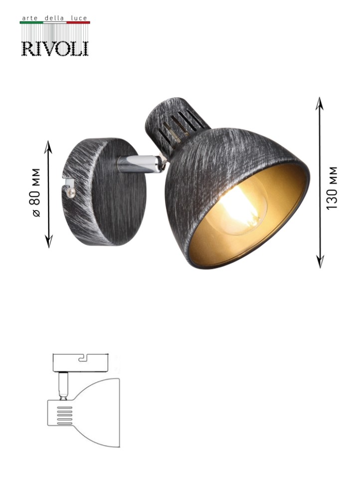 Чёрный цвет арматуры этих стильных спотов вручную патинирован серебром. Получив такую оригинальную текстуру корпуса, светильники Rivoli Eho стали идеальным решением для интерьеров в стиле лофт, минимализм, модерн, эклектика. Оснащены долговечным поворотным механизмом высокого качества с надёжной фиксацией, что позволяет с успехом использовать споты в гардеробных, мастерских, кладовых, прихожих, коридорах. Функциональное и красивое освещение в квартиру, студию, кафе, общественное пространство. Коллекция представлена спотом на 1 лампу.