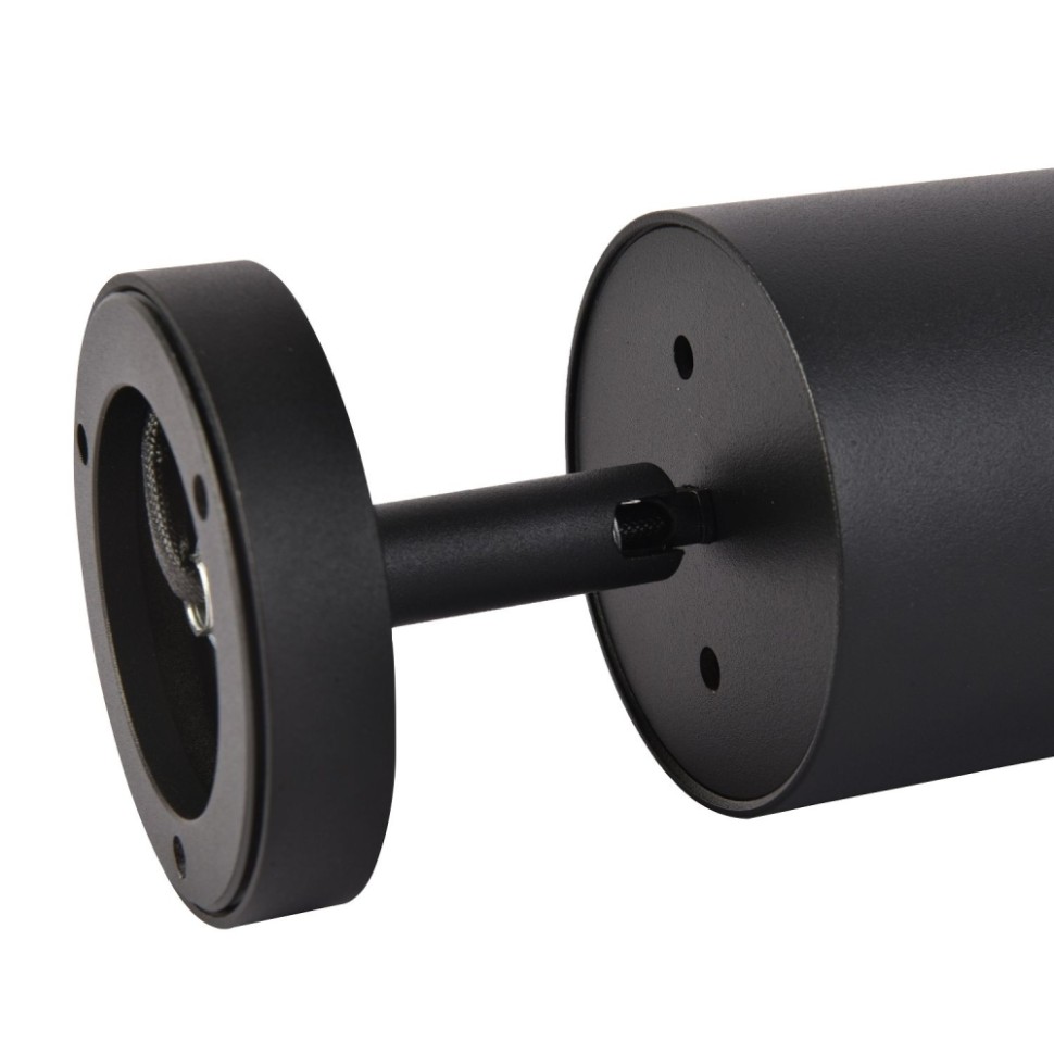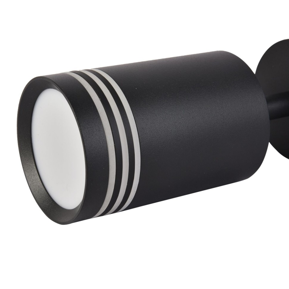 накладной светильник, каркас черного матового цвета, прозрачные декоративные элементы в виде колец, угол поворота до 90°, лампу GU10 можно менять