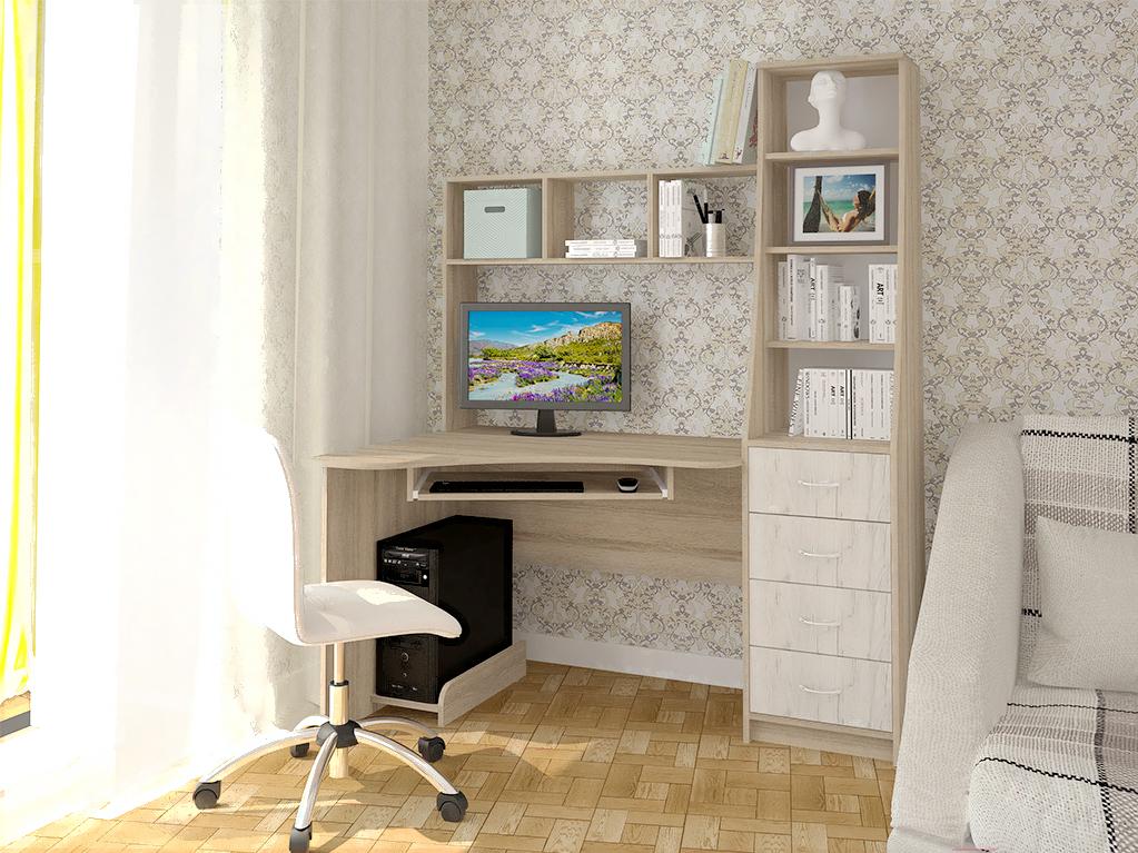 - Комплектация выдвижные ящики, полка (-и), полка для клавиатуры, ниша в столешнице