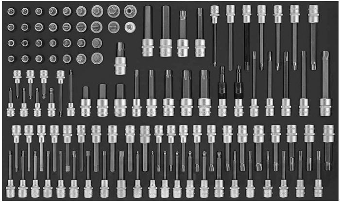 Набор, включающий в себя 114 головок-бит 3/8 и 1/2 .