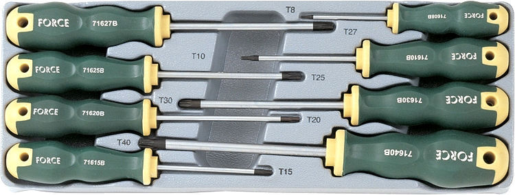 Набор, включающий в себя 8 отверток Torx с отверстием: T8H, T10H, T15H, T20H, T25H, T27H, T30H, T40H.