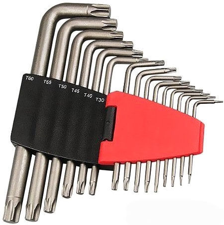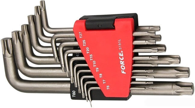Набор, включающий в себя 15 предметов: Ключи Torx с отверстием длинные T-6H; T-7H; T-8H; T-9H; T-10H; T-15H; T-20H; T-25H; T-27H; T-30H; T-40H; T-45H; T-50H; T-55H; T-60H.