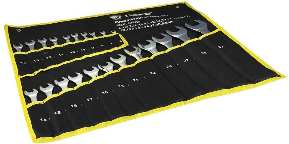 Набор комбинированных ключей 6, 7, 8, 9, 10, 10, 11, 12, 13, 13, 14, 15, 16, 17, 18, 19, 21, 22, 24, 27, 30, 32 мм.