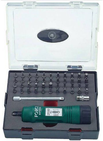 Набор, включающий в себя 47 предметов: Адаптер 1/4 (F) x 1/4 ; 1/4 Удлинитель L=100 мм; 1/4 Биты крестовые (Philips) (4 шт): PH.0; PH.1; PH.2; PH.3; 1/4 Биты крестовые (Pozidriv) (4 шт): PZ.0; PZ.1; PZ.2; PZ.3; 1/4 Биты шлицевые (SL) (5 шт): 3; 4; 5; 5.5; 6.5 мм; 1/4 Биты 6-гранные (HEX) (6 шт): 1.5; 2; 3; 4; 5; 6 мм; 1/4 Биты 4-гранные (3 шт): 1; 2; 3 мм; 1/4 Биты Torx (11 шт): T6; T7; T8; T9; T10; T15; T20; T25; T27; T30; T40; 1/4 Биты Torx с отверстием (11 шт): T6H; T7H; T8H; T9H; T10H; T15H; T20H; T25H; T27H; T30H; T40H..