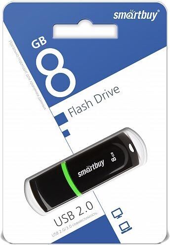 8 Гб, USB 2.0, с колпачком, материал: пластик, запись 5 Мб/с, чтение 15 Мб/с.