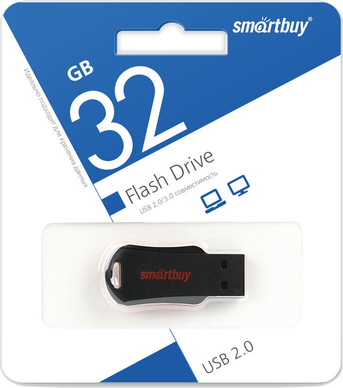 32 Гб, USB 2.0, без колпачка, материал: пластик.