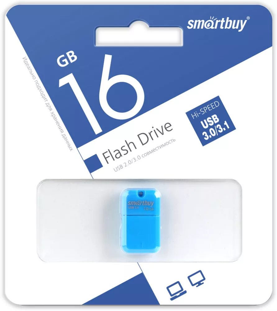 16 Гб, USB 3.2 Gen 1 Type-A, с колпачком, материал: пластик, запись 25 Мб/с, чтение 75 Мб/с.