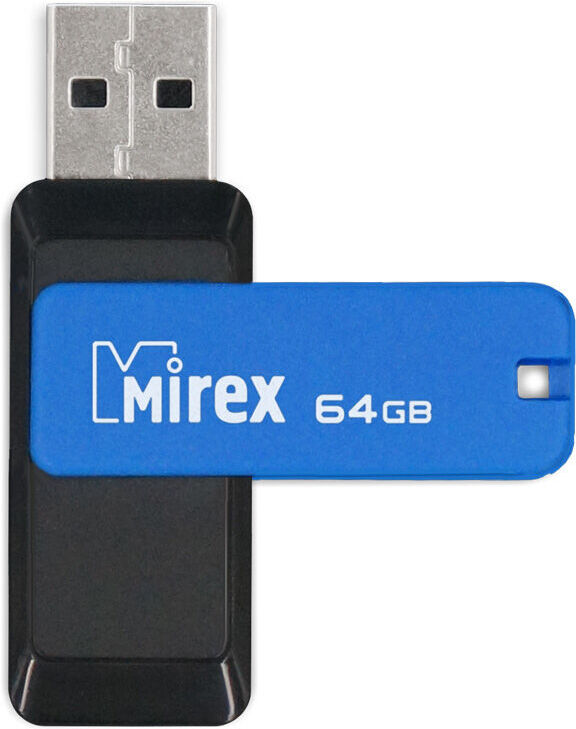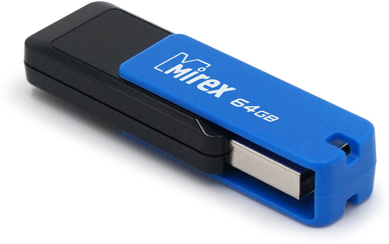 64 Гб, USB 2.0, раскладной корпус, материал: пластик, запись 8 Мб/с, чтение 18 Мб/с.