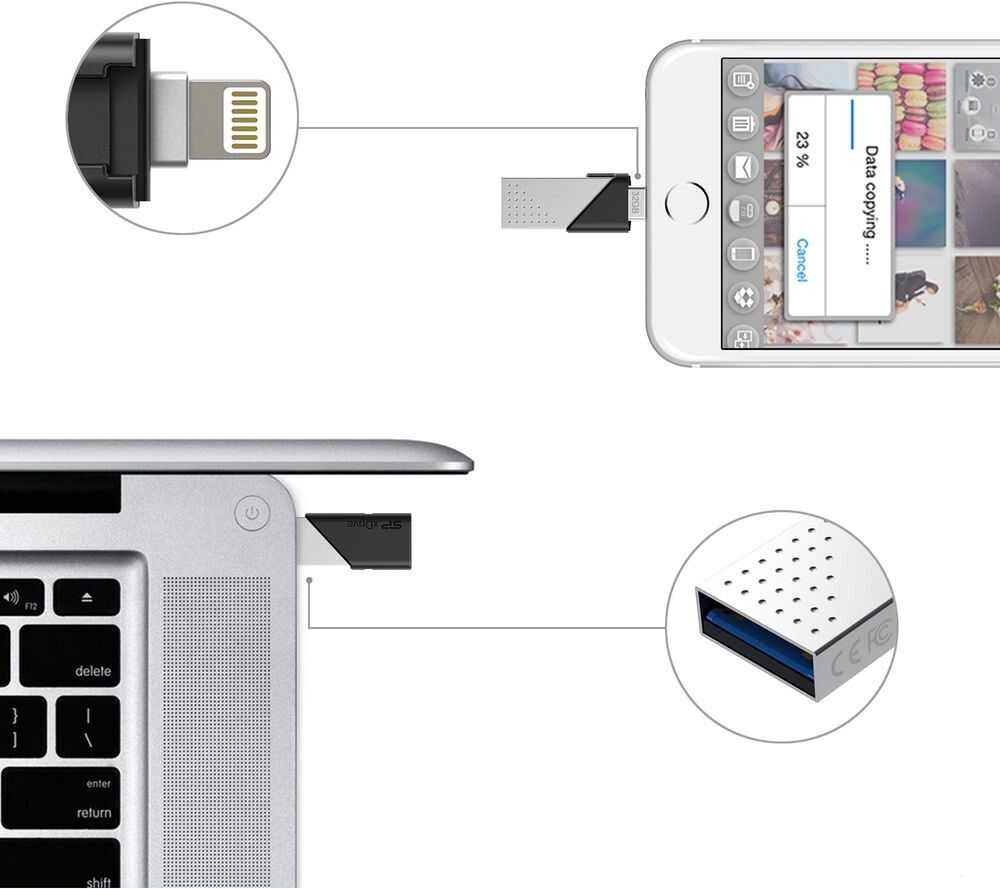 128 Гб, USB 3.2 Gen 1 Type-A/Lightning, с колпачком, материал: комбинированный, пылевлагозащитный корпус.