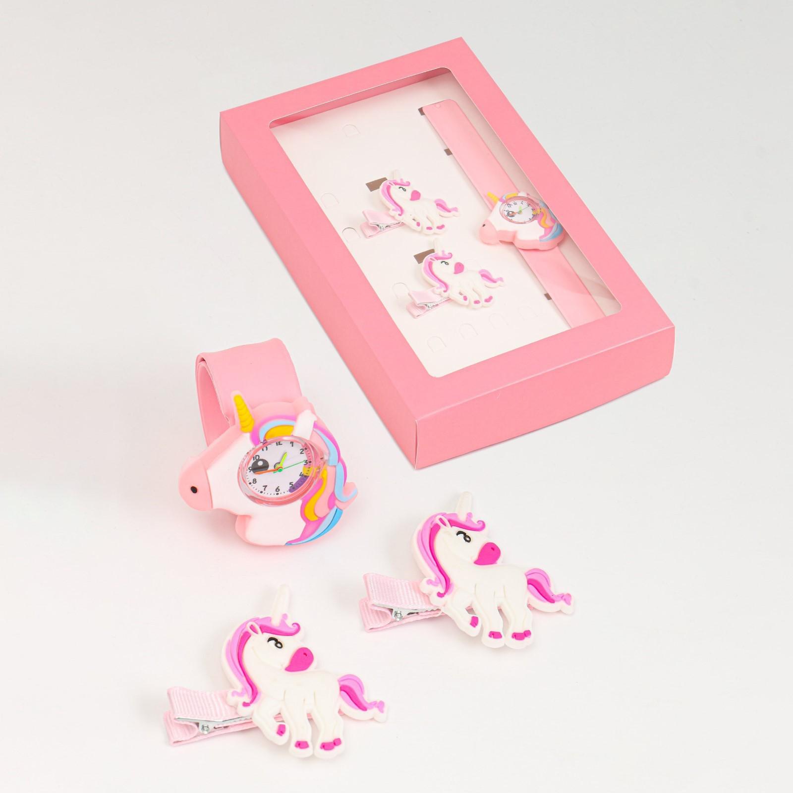 Подарочный набор "Единороги" 5 в 1: наручные часы, 2 резинки, 2 невидимки 7182958