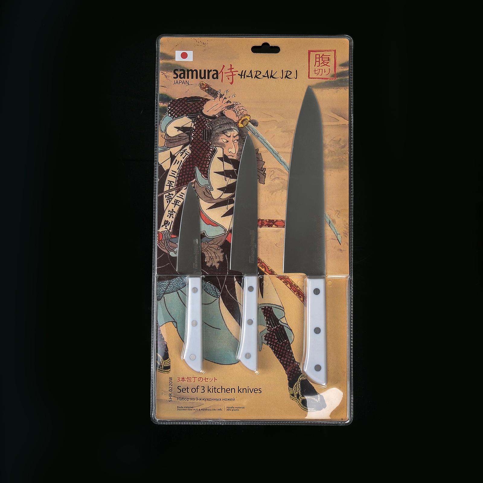 Набор кухонных ножей Hаrаkiri, 3 шт: лезвие 10 см, 12 см, 20 см, белая рукоять 3466974