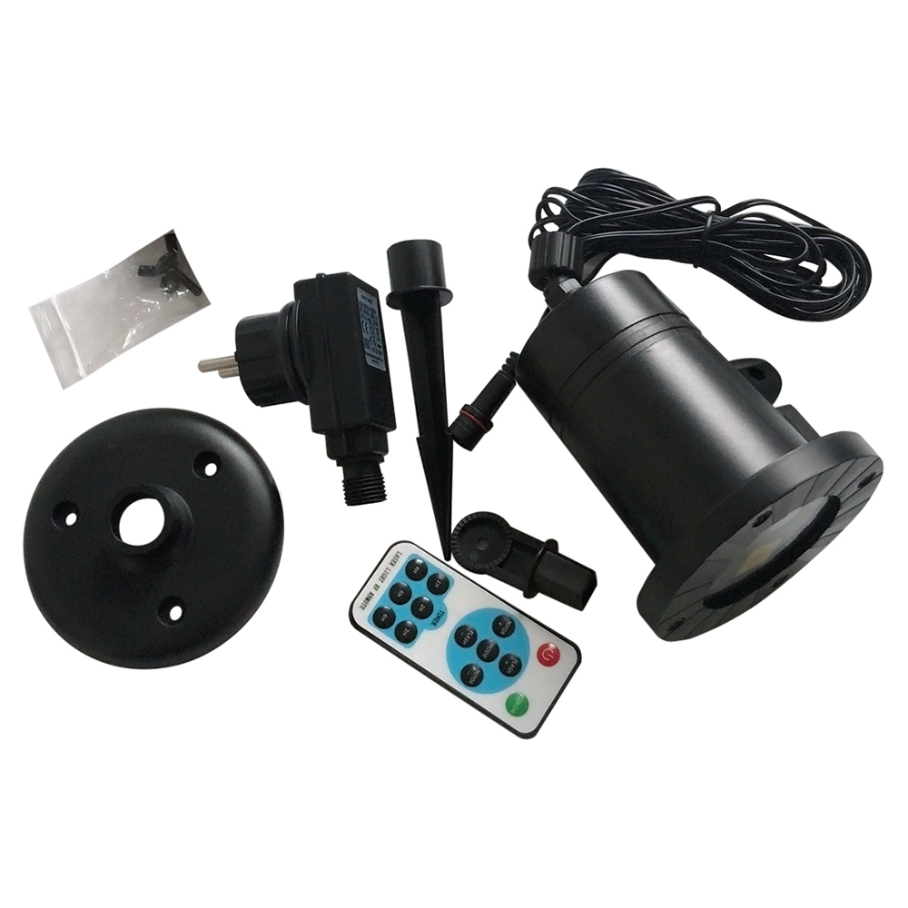 Размер проектора D10*H9 см. Длина провода 10м. Цветовая гамма лазера зеленый (532HM), красный (650HM). Мощьность 6W. Цвет корпуса черный. Напряжение питания проектора24V DC.Блок питания входит в комплект. Срок службы 10000 часов. Растояние проекции от 5 до 25 м (чем дальше то поверхности, тем шире площадь обхвата). Пульт дистонционного управления позволяет управлять режимпами свечения, скоростью и выставлять время выключения( таймер). Угол освещения 120градусов. В комплекте с проектором идет штатив для установки в грунт и подвесной крепеж( под подставку).