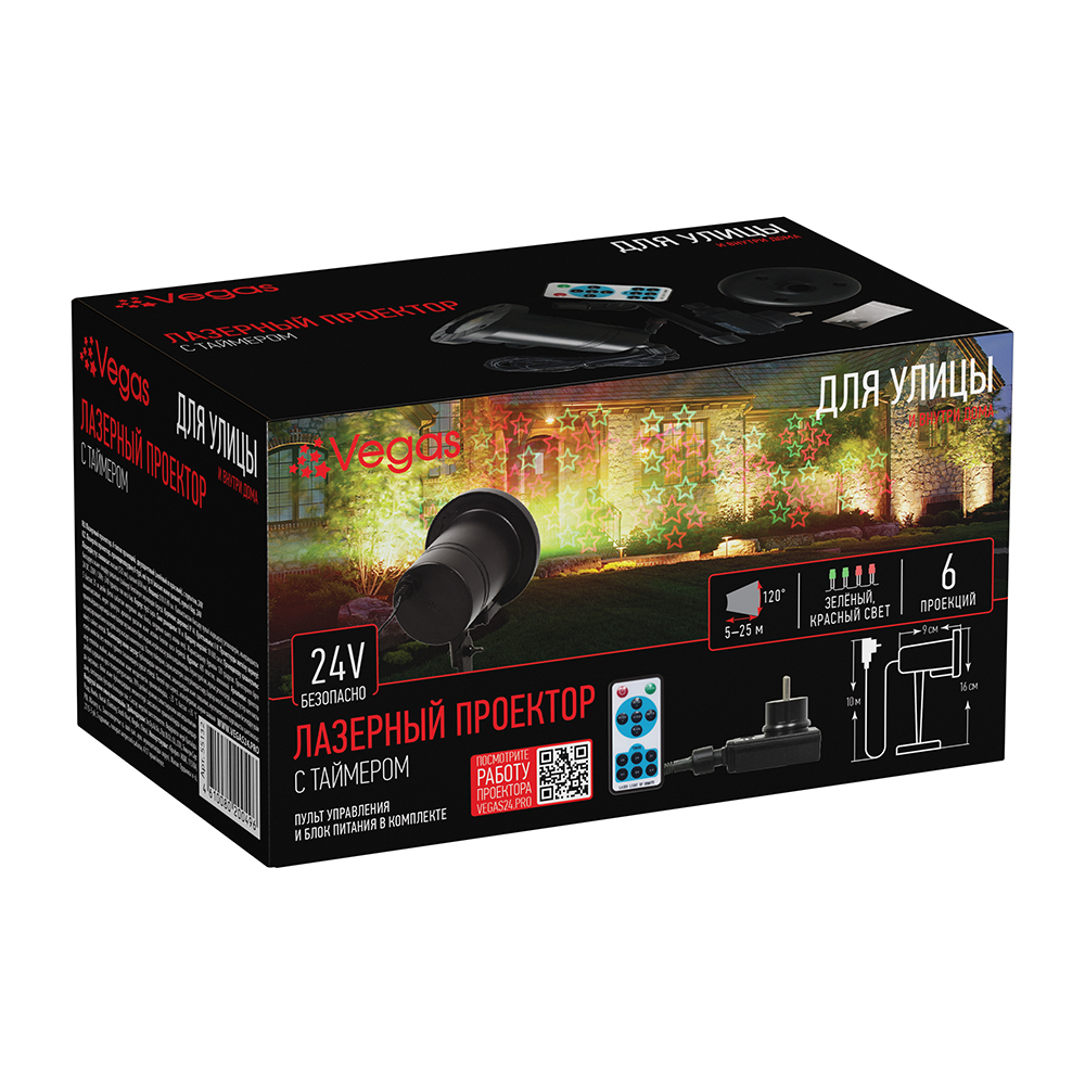 Лазерный проектор для улицы и дома Vegas, 6 типов проекций, арт. 55132