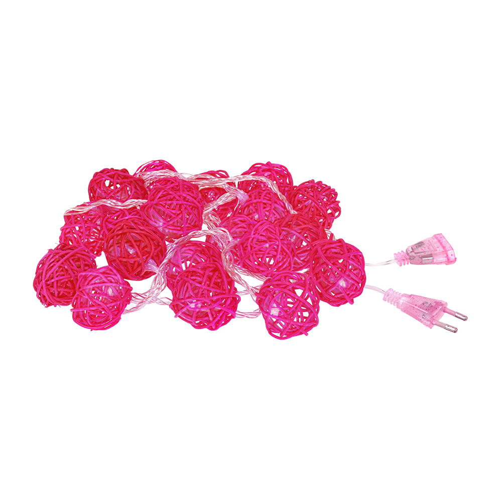 Длина гирлянды 2.5 м, длина провода 5 м, количество светодиодов 20. Цвет свечения розовый, режим работы постоянный, цвет провода прозрачный. Степень защиты IP 20. Мощность 1,8 W. Использовать при комнатной температуре. Имеет возможность последовательного соединения до 7 гирлянд. Срок службы 25 000 часов.
