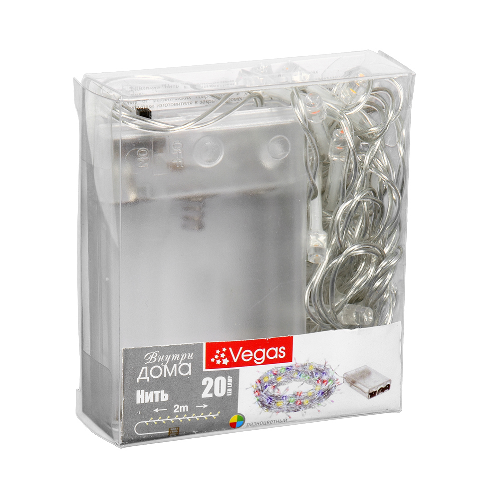 Электрогирлянда "Нить" Vegas, 2 м, на батарейках, арт. 55104