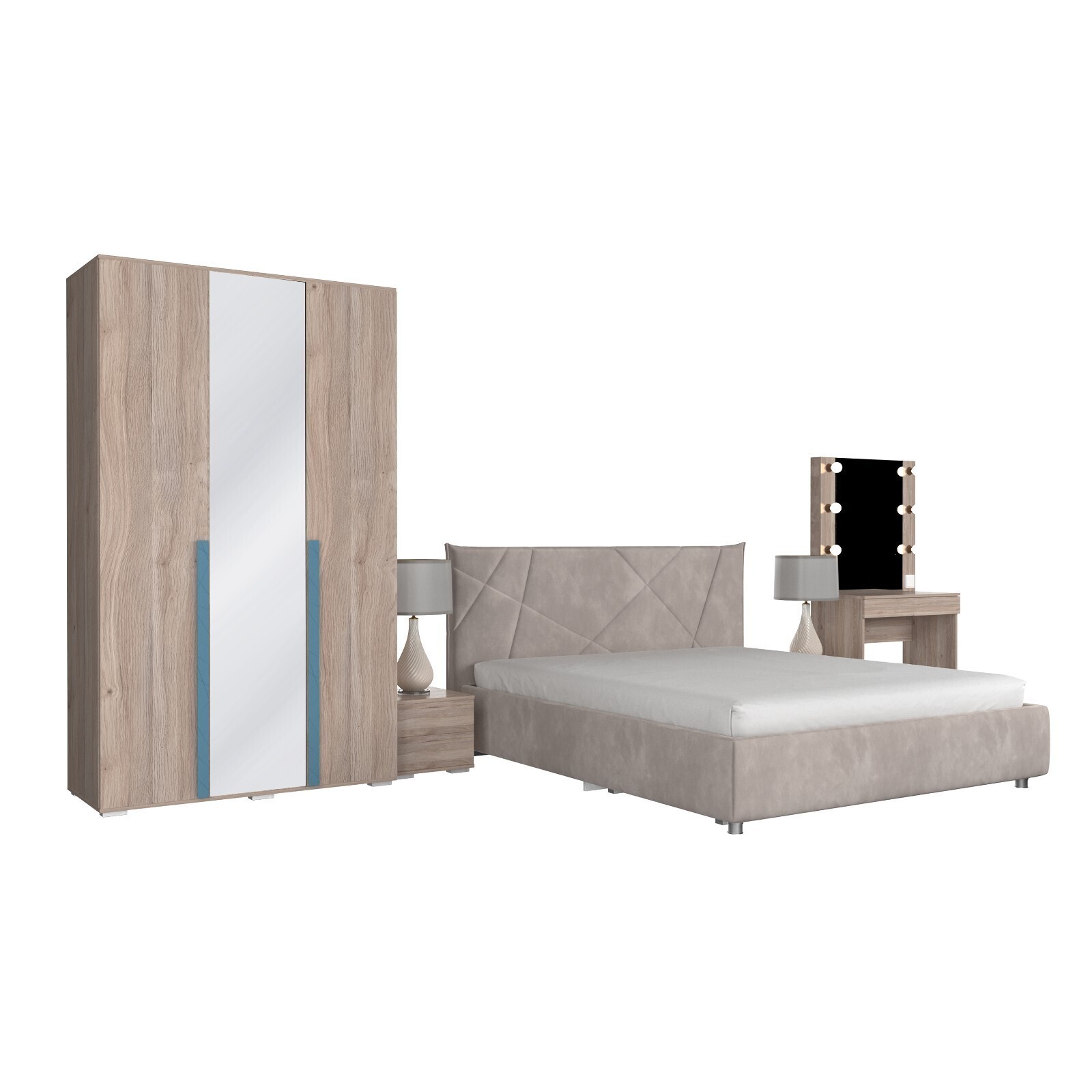 Cпальный гарнитур «Лайк К12», ЛДСП, велюр, цвет дуб мария / индиго / капучино 9325291