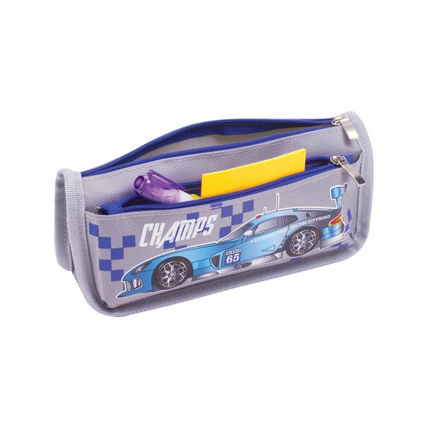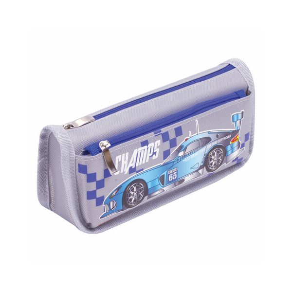 Описание товара Пенал ЮНЛАНДИЯ для мальчиков, 2 отделения, полиэстер, Машина, серый, 21х6х9 см