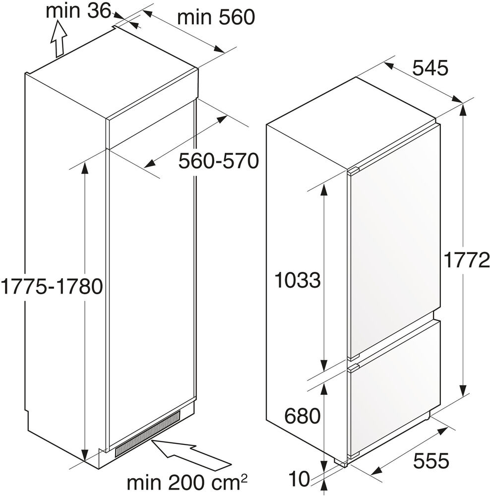 Встраиваемый, двухкамерный, компоновка морозильник внизу, No Frost, класс энергопотребления A++, объем холодильной камеры 180 л, объем морозильной камеры 68 л, зона свежести (BioFresh), электронное управление, встроенные ручки, дисплей.