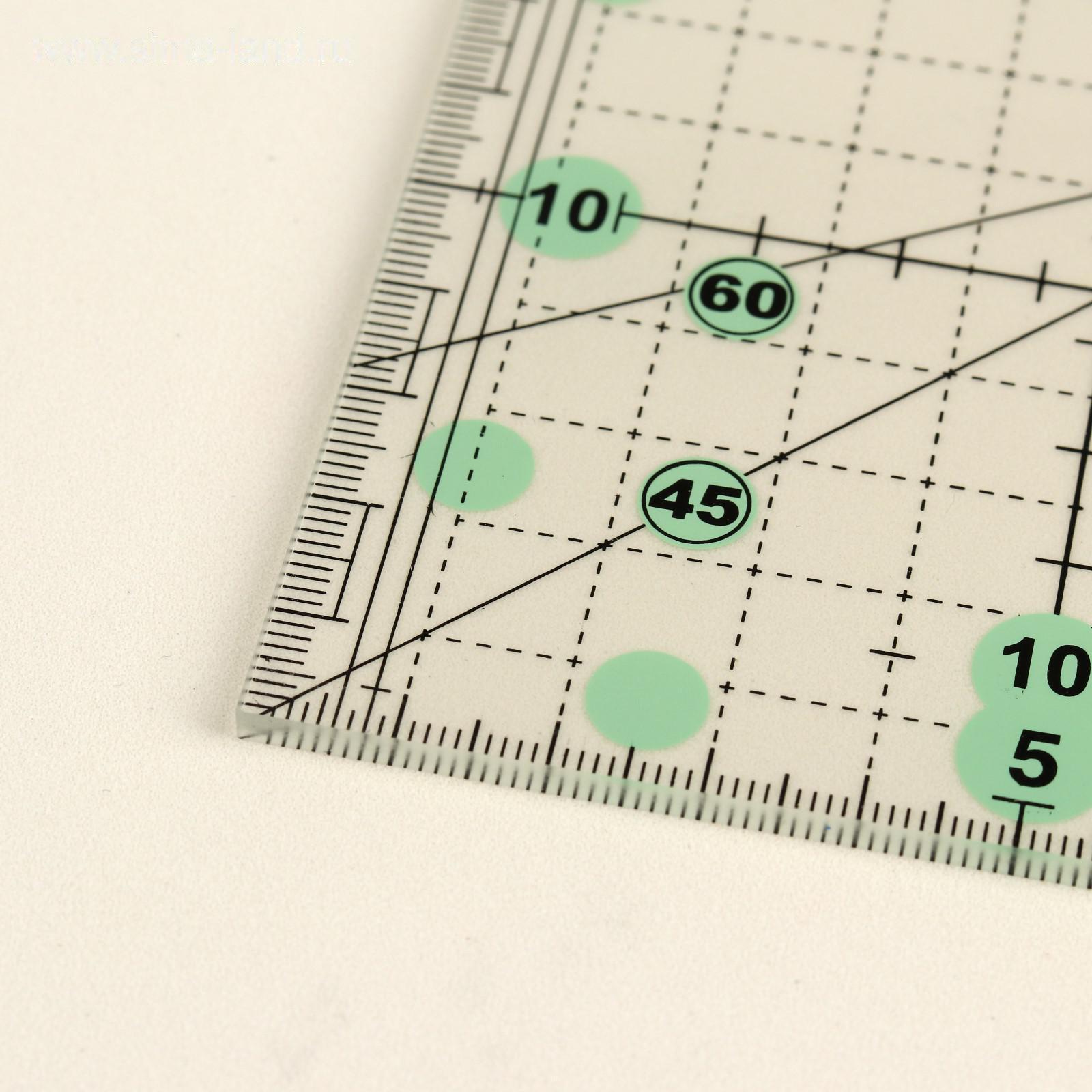 Линейка для пэчворка, антискользящая, 15 × 15 см, толщина 3 мм, цвет прозрачный, AU-1515 2898768