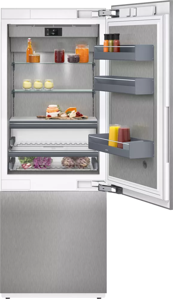 Встраиваемый, двухкамерный, компоновка морозильник внизу, No Frost, класс энергопотребления A++, объем холодильной камеры 316 л, объем морозильной камеры 136 л, зона свежести (BioFresh), электронное управление, дисплей.