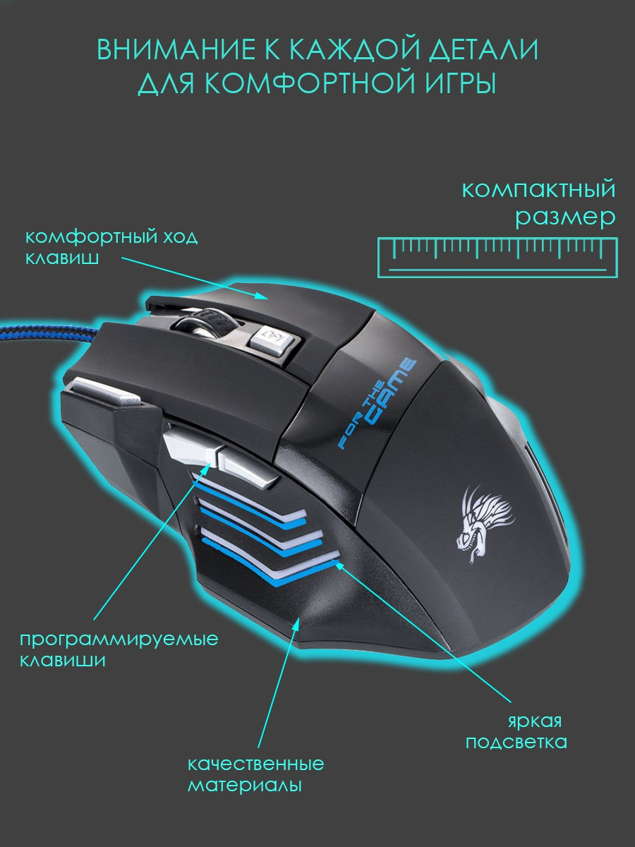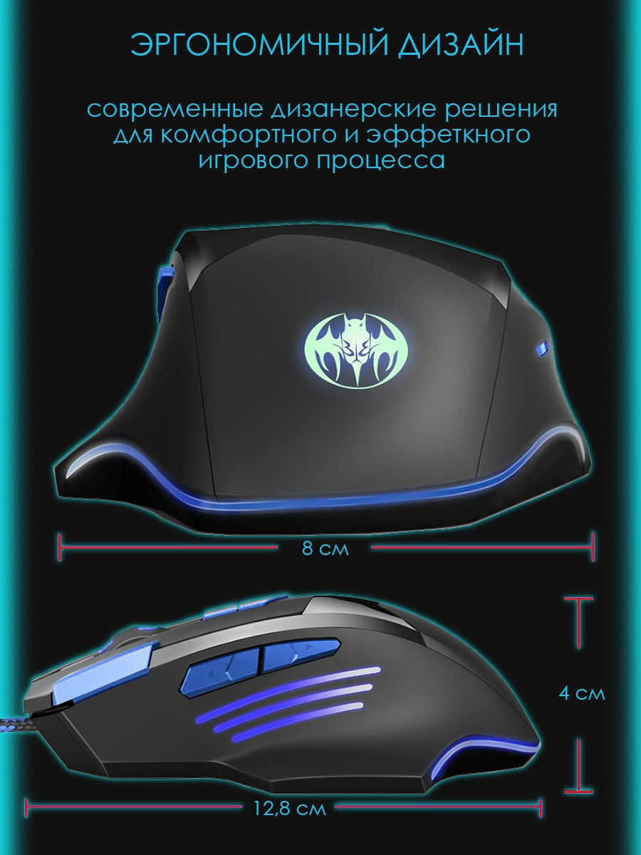 Игровая мышь, проводная, черная
