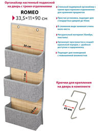 Подвесной органайзер UniStor ROMEO с тремя отделениями для хранения вещей надверный