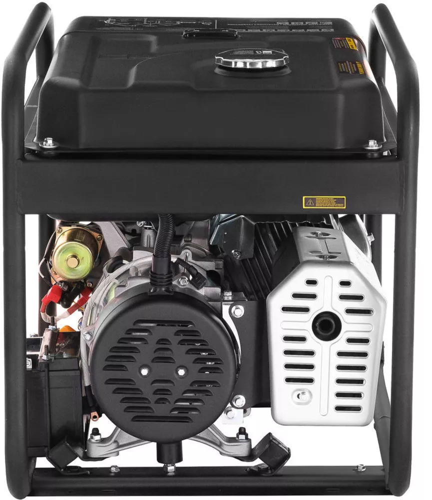 Бензиновый генератор, четырехтактный, синхронный, 6 кВт, 12 В, 380 В, 220±10 В, вольтметр, защита от перегрузки, счетчик моточасов, индикатор уровня топлива, индикатор уровня масла, электростартер, ручной запуск, воздушное охлаждение, открытый.
