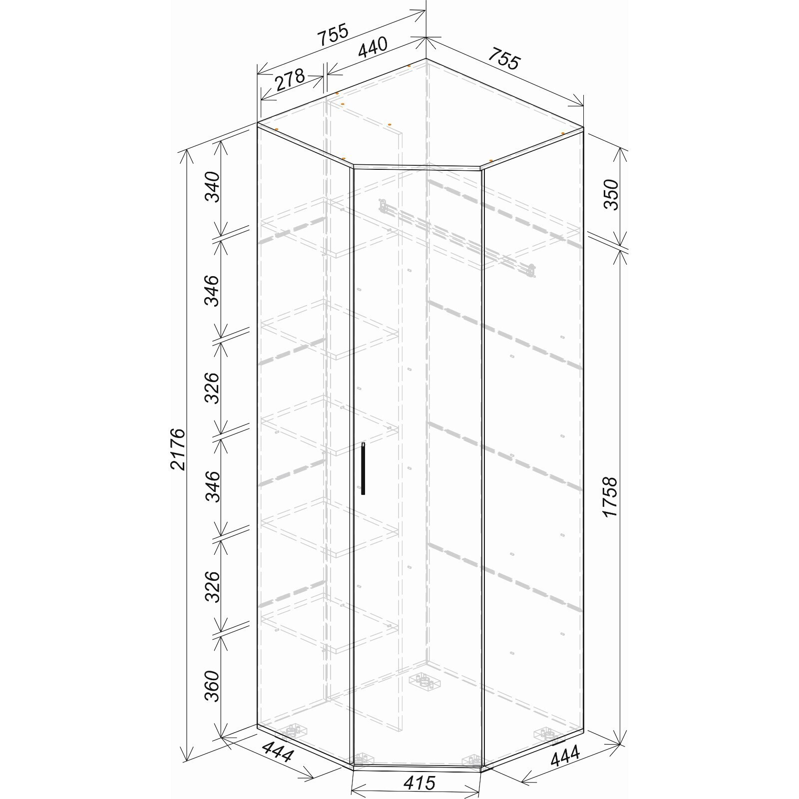 Ширина стенки соприкосновения с другими шкафами — 460 мм.