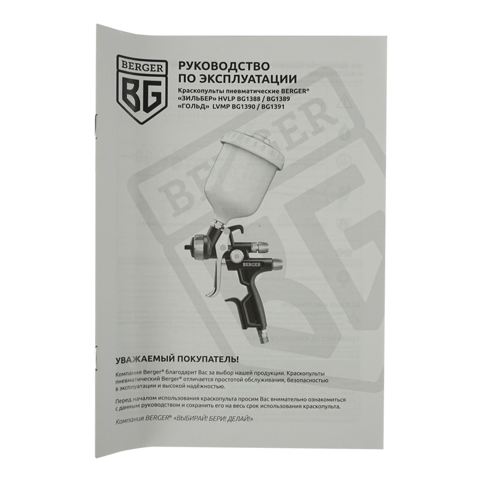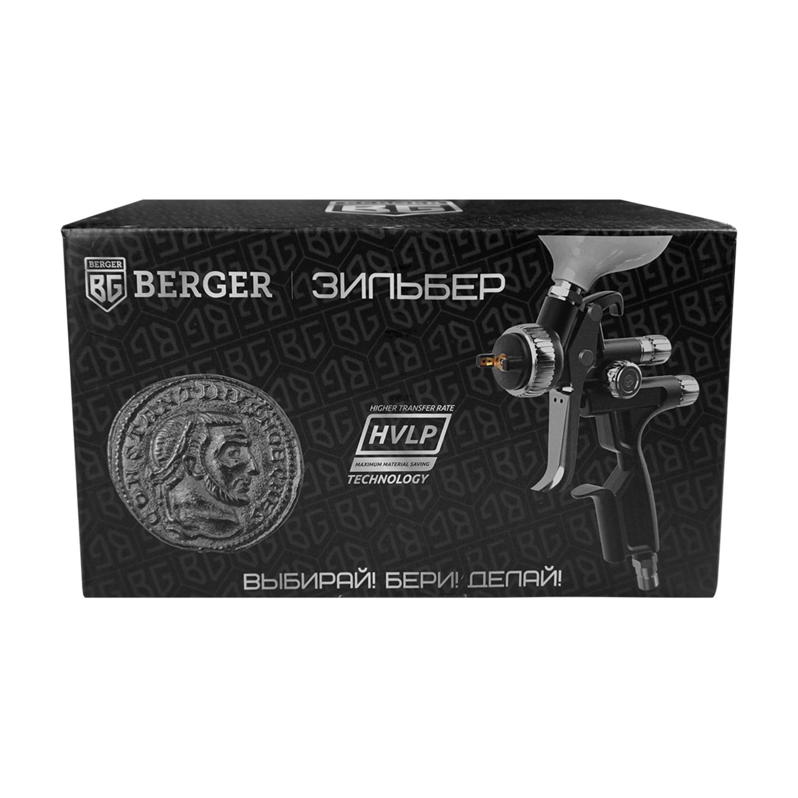 Краскопульт пневматический BERGER «ЗИЛЬБЕР» BG1388, HVLP, 30 DIN, 3 атм, 1/4F, сопло 1.3 мм 7023467