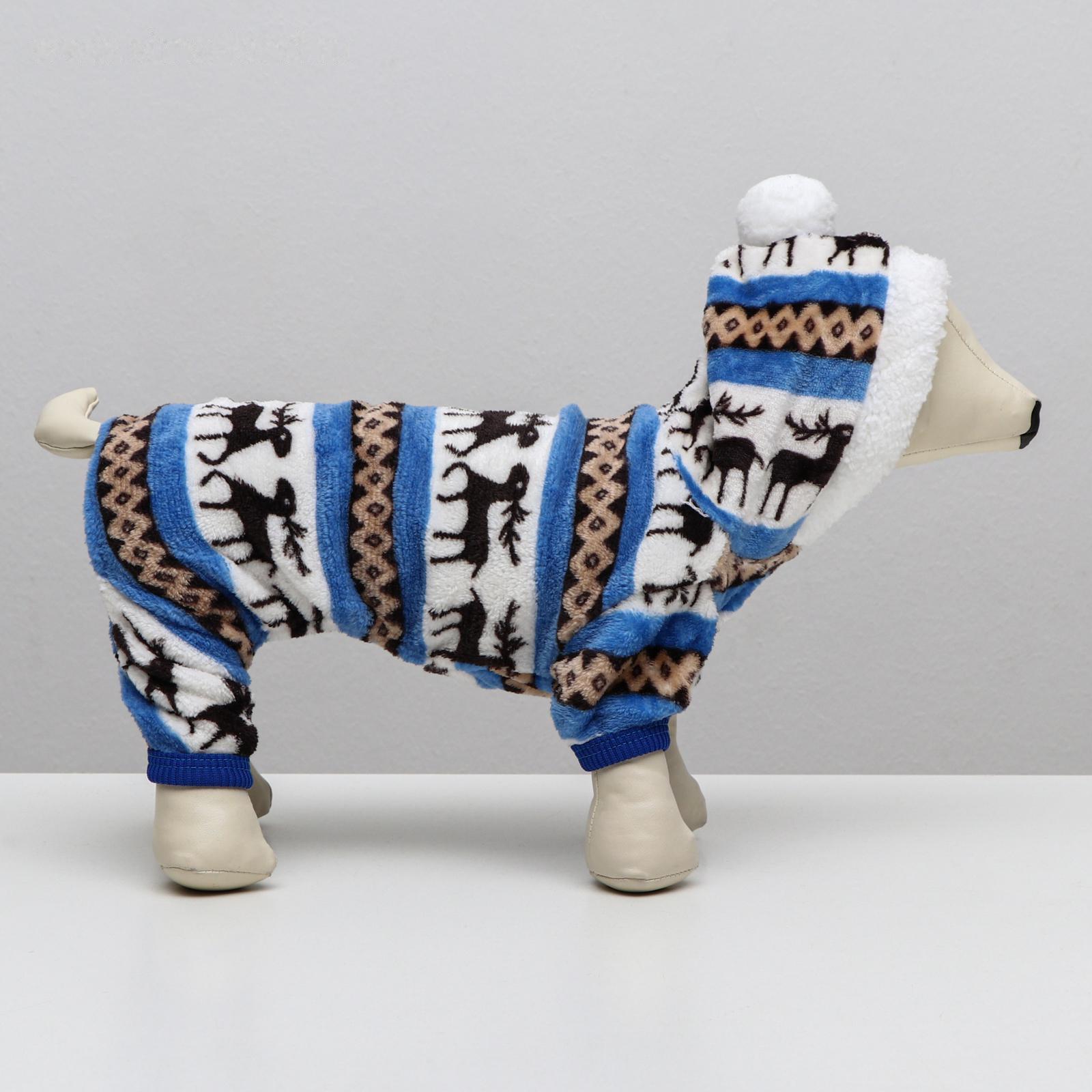 Комбинезон "Олени" с капюшоном, размер L (ДС 30 см, ОГ 40 см, ОШ 36 см), голубой 2712583