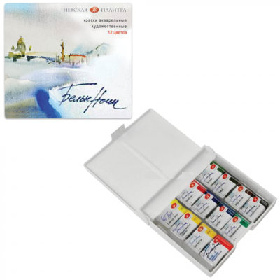 Краски акварельные художественные "Белые ночи", 12 цветов, кювета 2,5 мл, картонная коробка, 1942036