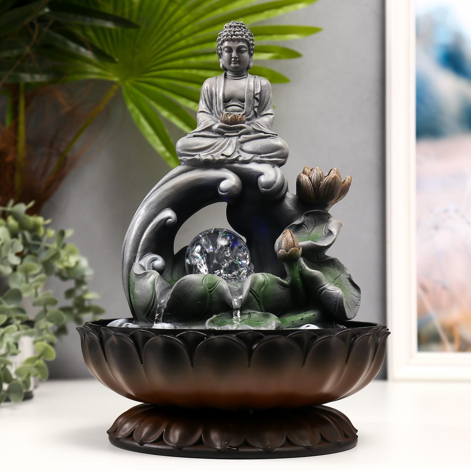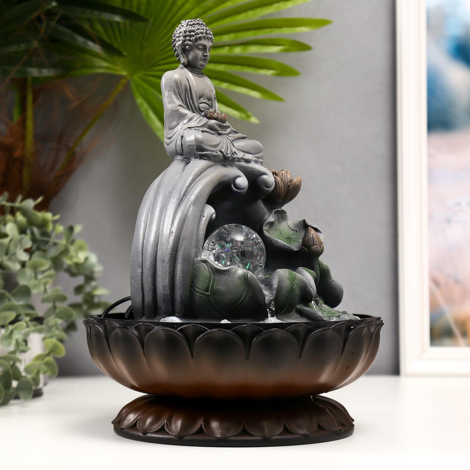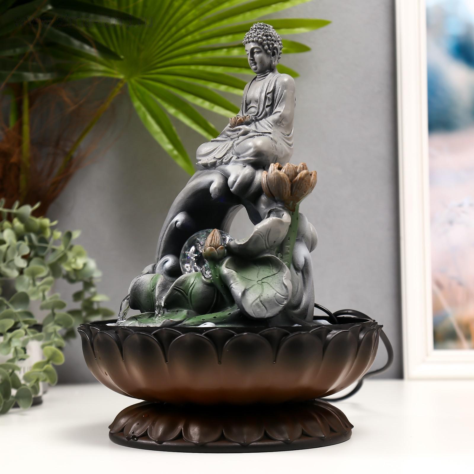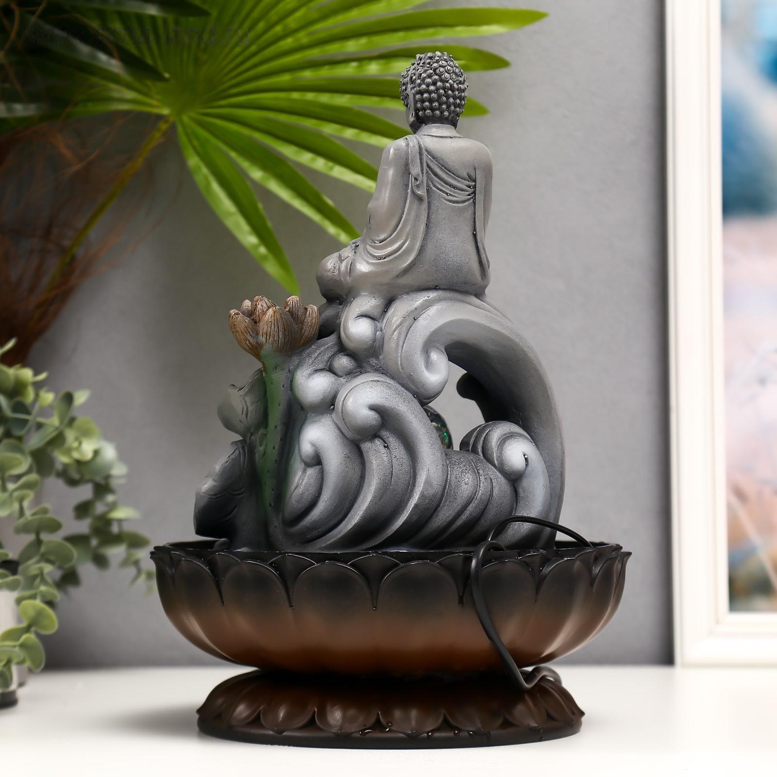 Фонтан настольный от сети, подсветка "Серый будда на волне" 34х23х23 см 5134871