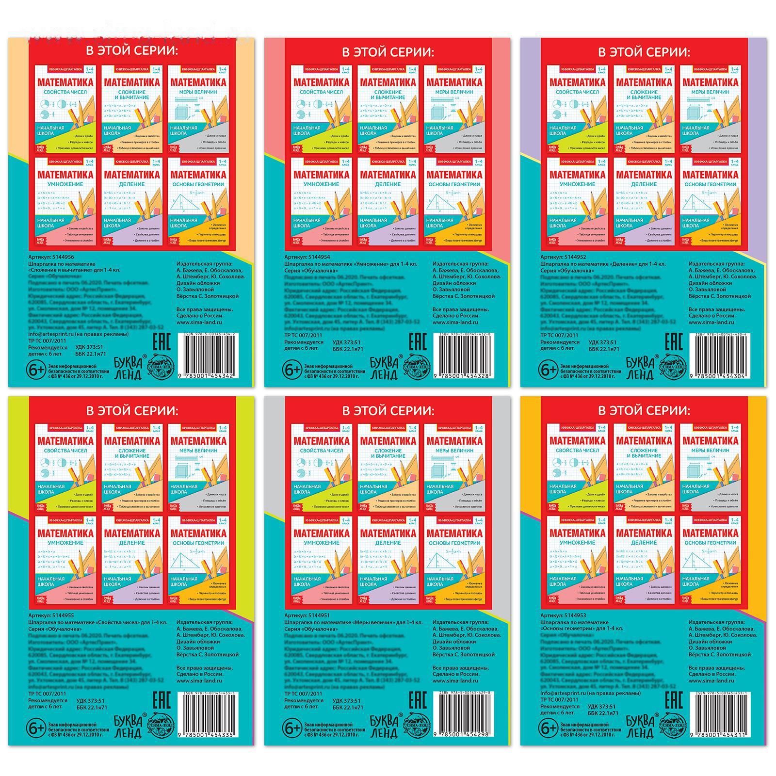 Шпаргалки для 1—4 кл. набор «Основы математики» 6 шт. 5144957