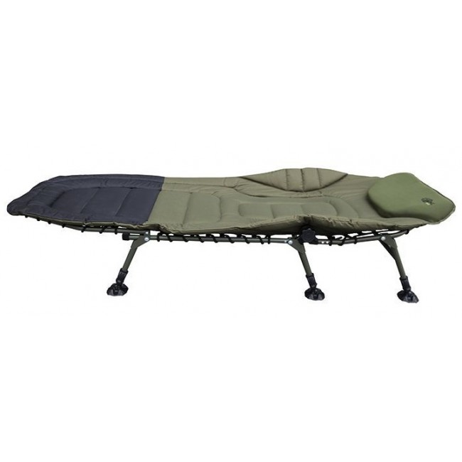 Кровать складная. Рама с эластичным матрасом. Сложная форма спинки для дополнительного комфорта, мягкая подушка, шесть независимо регулируемых по высоте ножек с широкими опорами.