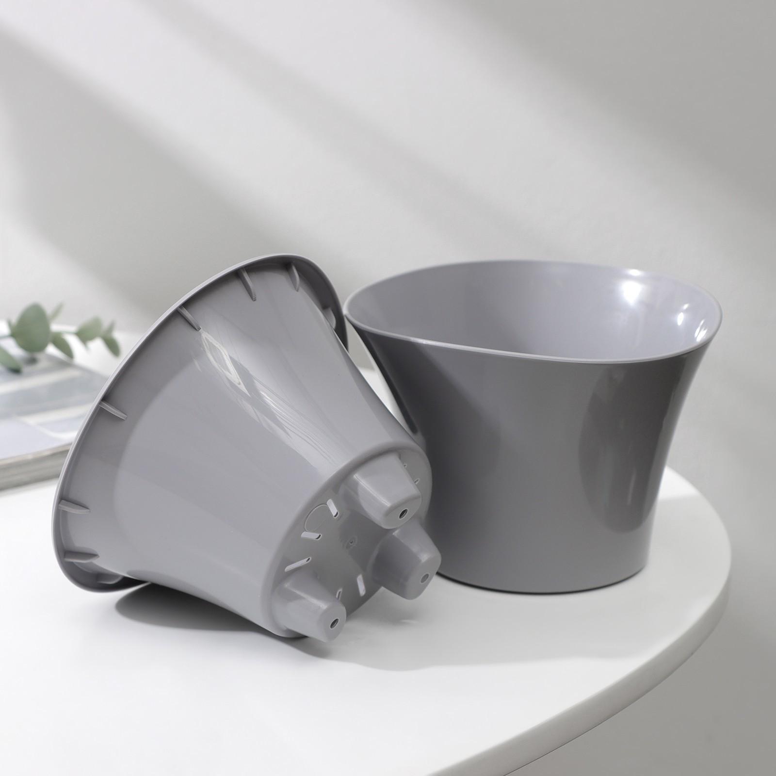 Кашпо для цветов со вставкой «Лагуна», 600 мл, d=13 см, h=9 см, цвет серый 9115475