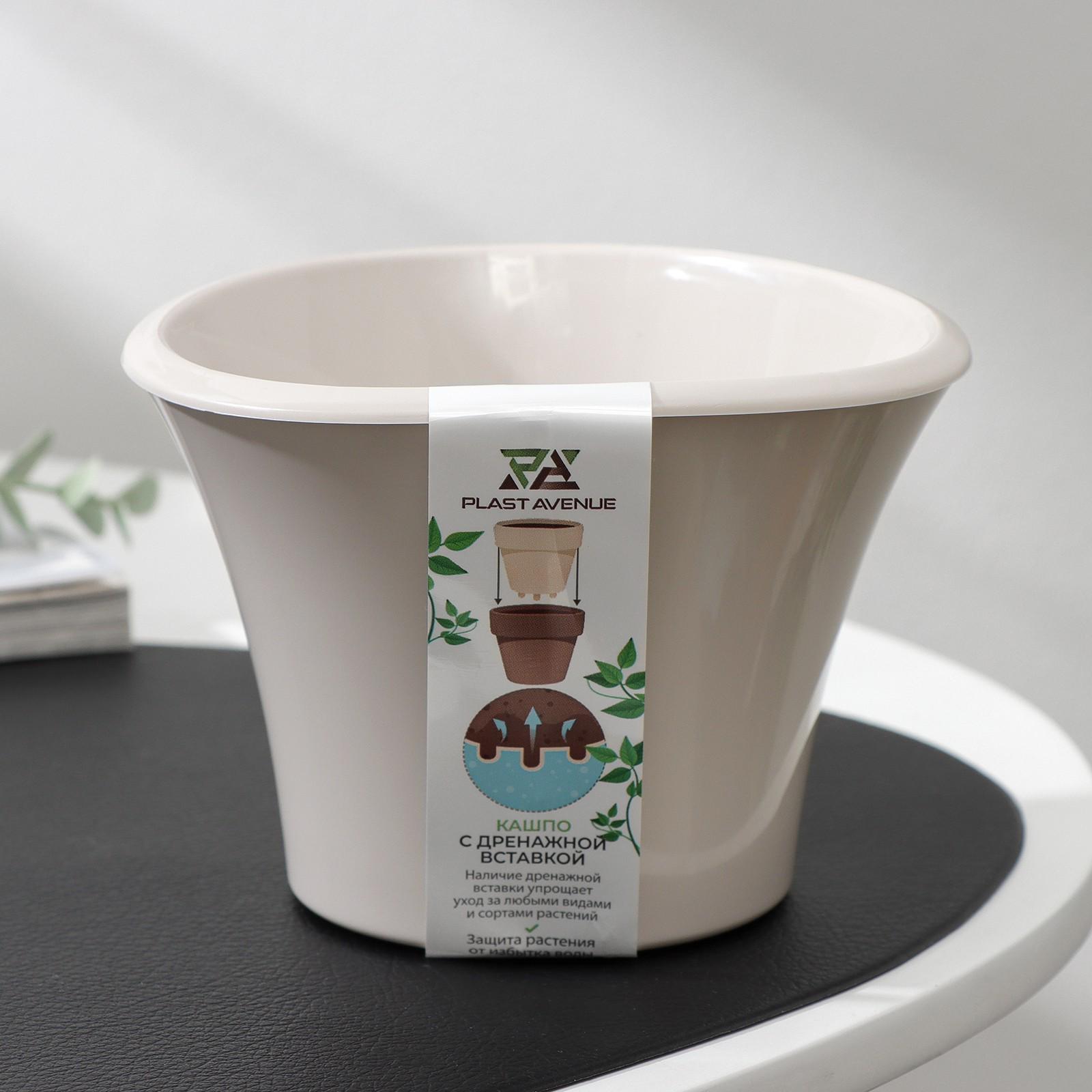 Кашпо для цветов со вставкой «Лагуна», 600 мл, d=13 см, h=9 см, цвет бежевый 9115476