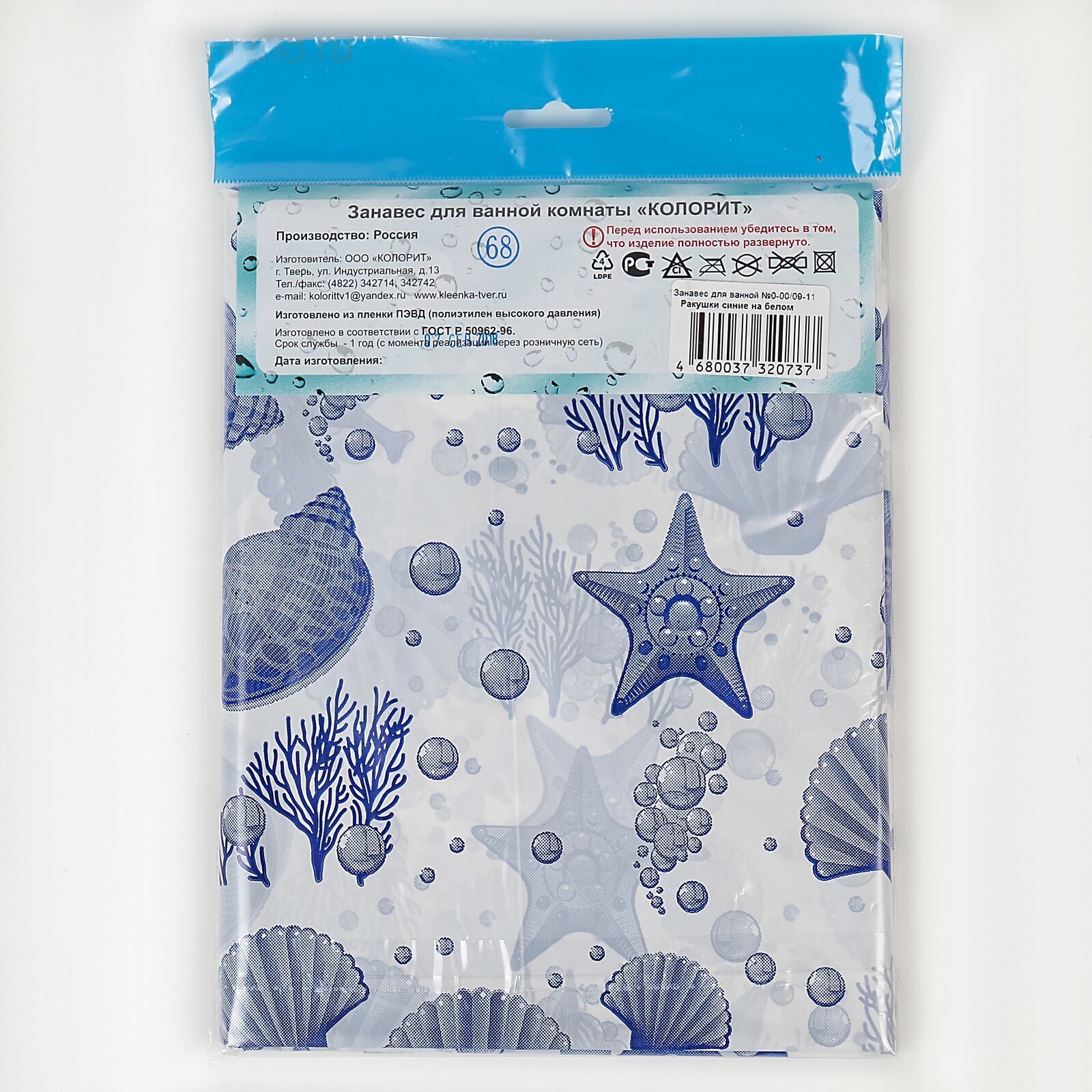 Штора для ванной комнаты «Ракушки», 180×180 см, полиэтилен, цвет белый 1534656