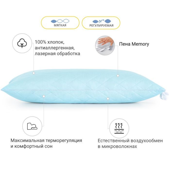 А високотехнологічна лазерна обробка надає бавовняній тканині не тільки естетичний вигляд, але й продовжує термін експлуатації самого виробу. Тканина зі 100% високоякісної єгипетської бавовни, досить щільна та довговічна. Завдяки бавовні дає змогу «дихати» виробу і не порушує природну мікроциркуляцію повітря в подушці, у такий спосіб ви не будете пітніти під час сну навіть дуже спекотного літа.