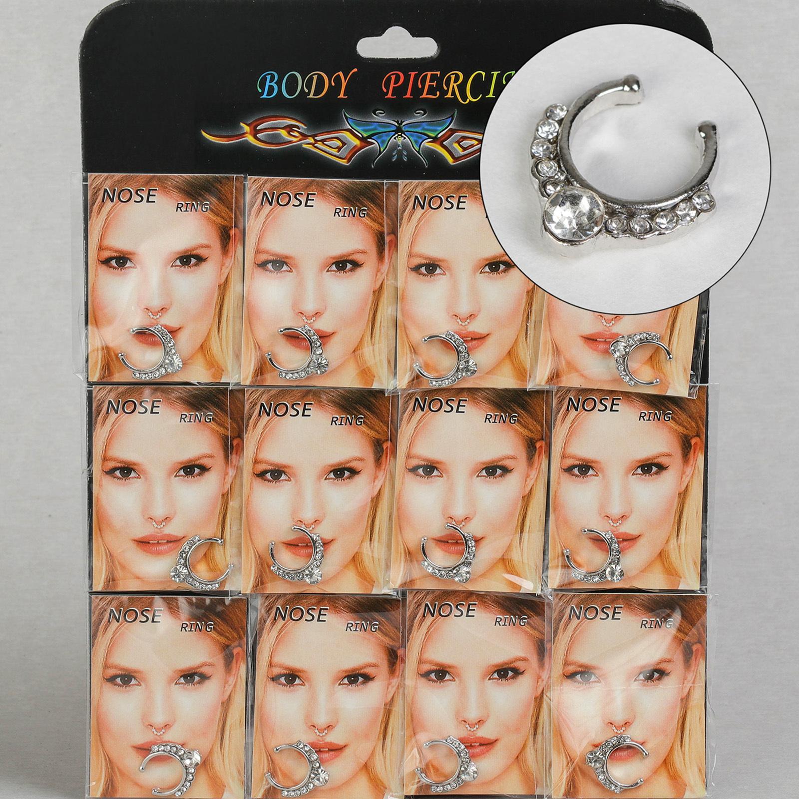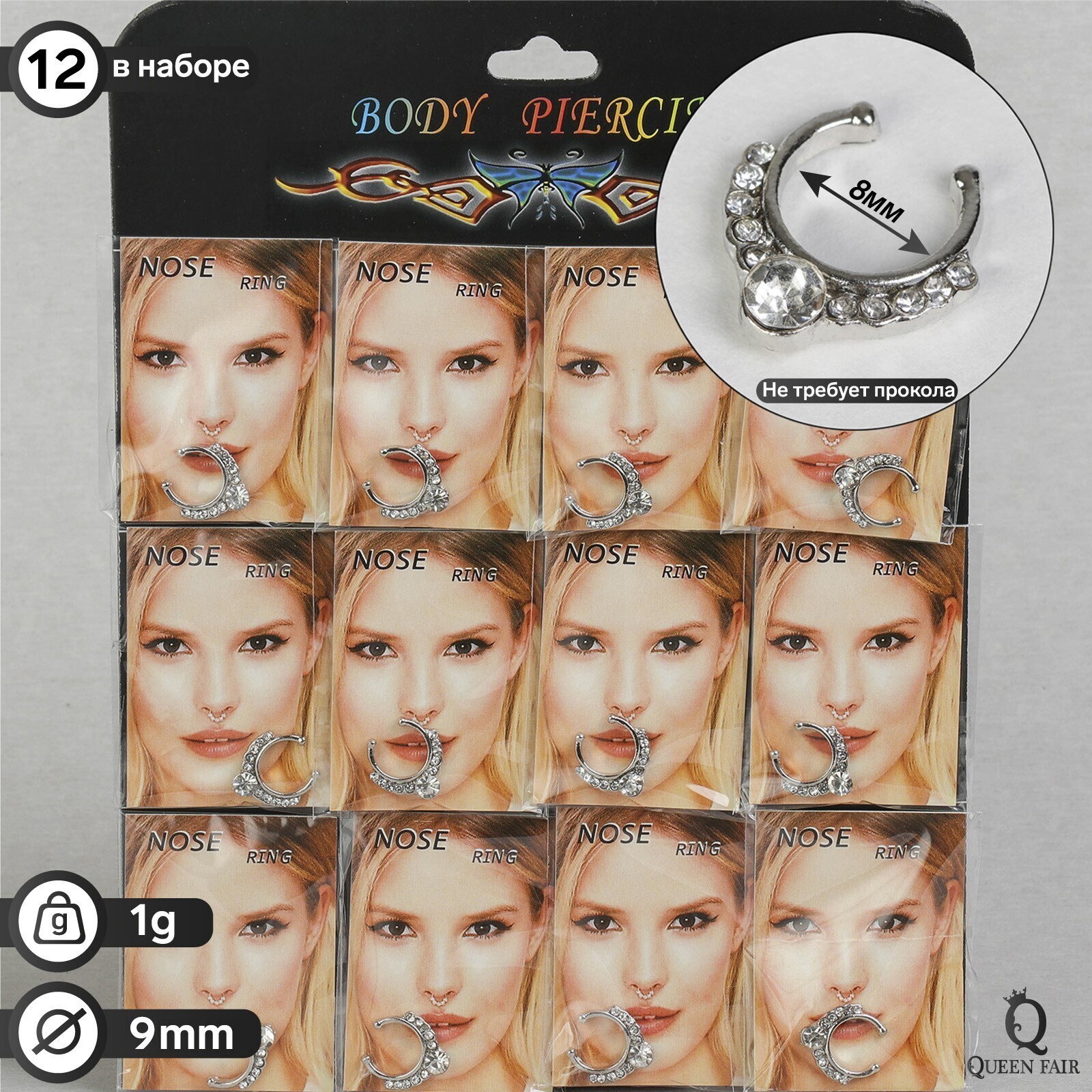 Пирсинг в нос (фейк для септума) "Кольцо" страза, набор 12шт, d=10мм, цвет белый в серебре 4437901