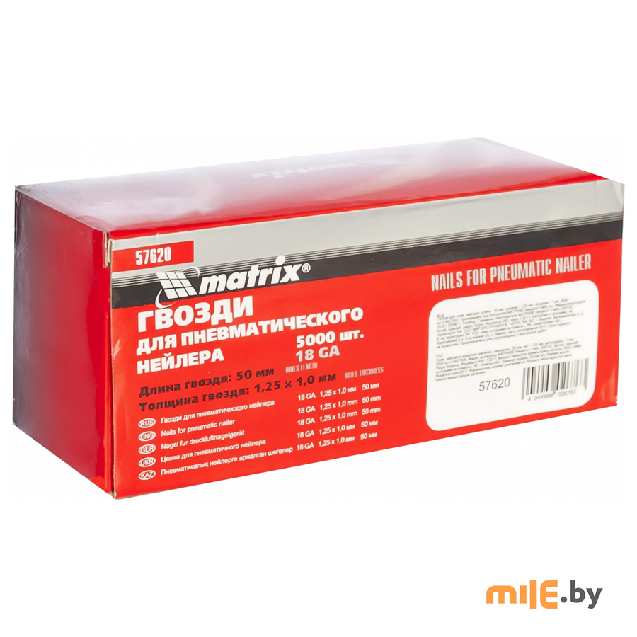 Гвозди для пневматического нейлера длина 50 мм ширина 1,25 мм толщина 1 мм 5000 шт Matrix 57620