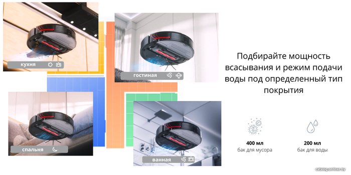 • Функциональные особенности локальная уборка, уборка по расписанию, виртуальная стена в приложении, автовозврат на базу, определение ковров