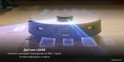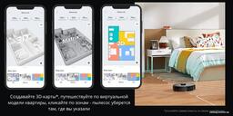 • Функциональные особенности пылесоса локальная уборка, уборка по расписанию, виртуальная стена в приложении, автовозврат на базу, определение ковров