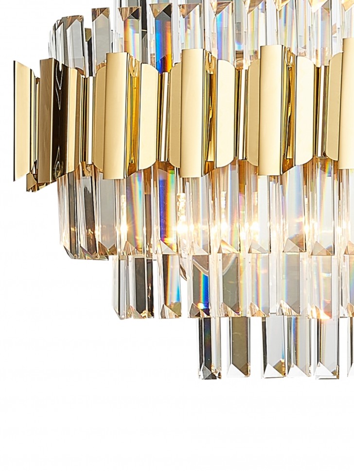 Современный светильник из серии RUBY с использованием высококачественных материалов. Данная модель в цвете «Золото» станет отличным дизайнерским решением и позволит подчеркнуть стилистику интерьера. Основные элементы выполнены из: металл, нержавеющая сталь, хрусталь. Данный светильник рассчитан на 12 лампочек с цоколем E14, мощностью до 40W. Тип крепления: Планка. Производство светильников соответствует стандарту системы менеджмента качества ISO 9001-2000. На всю продукцию ТМ Natali Kovaltseva распространяется расширенная гарантия по программе лояльности клиентов.
