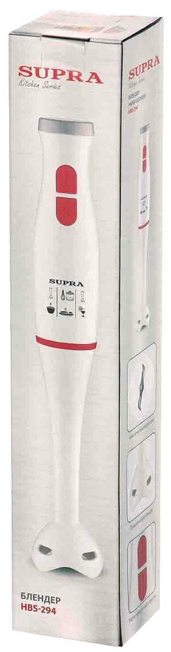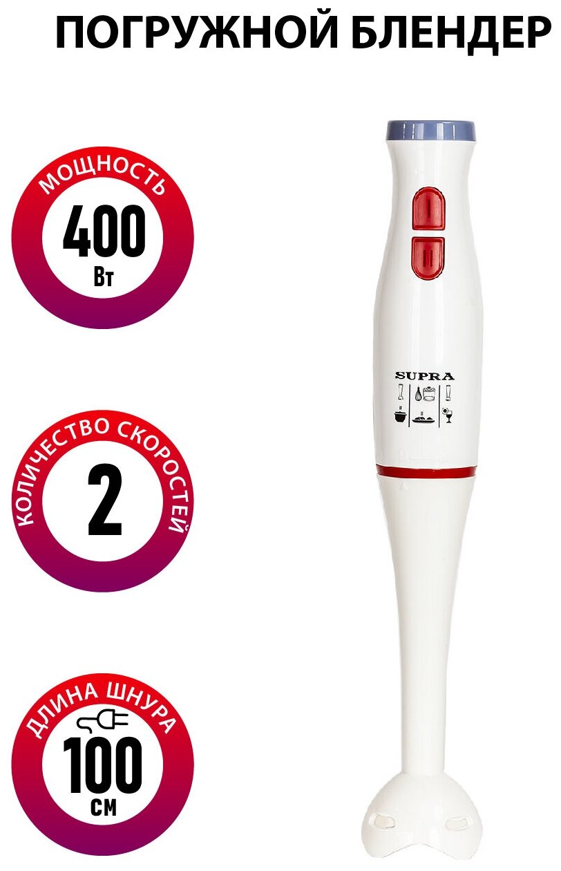 Описание товара Блендер погружной Supra HBS-294 400Вт белый/красный