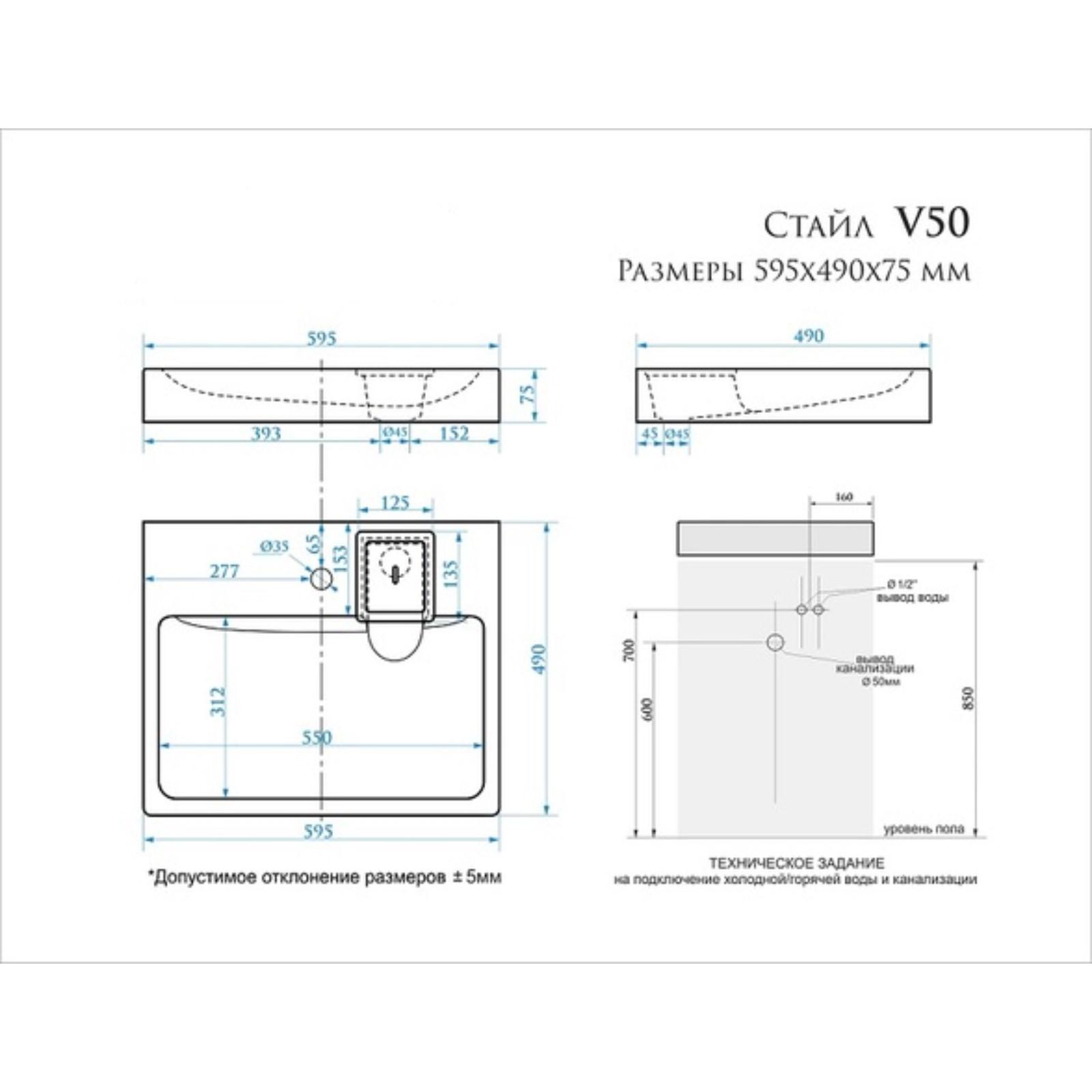 - Размер (Длина × Ширина × Высота) 50 см х 59,5 см х 11 см