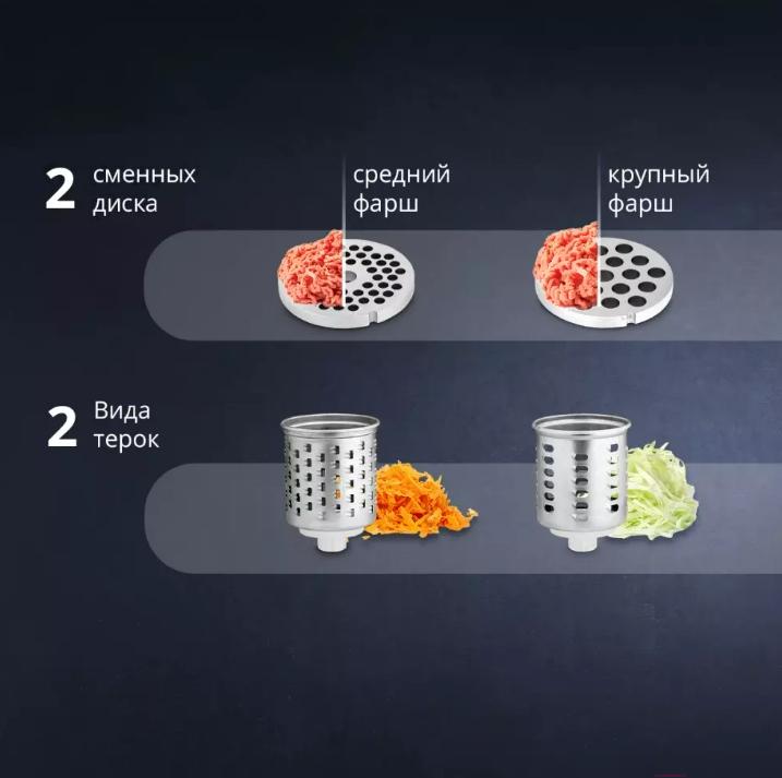 • Насадки диск для фарша (3 мм, 7 мм), для шинковки
